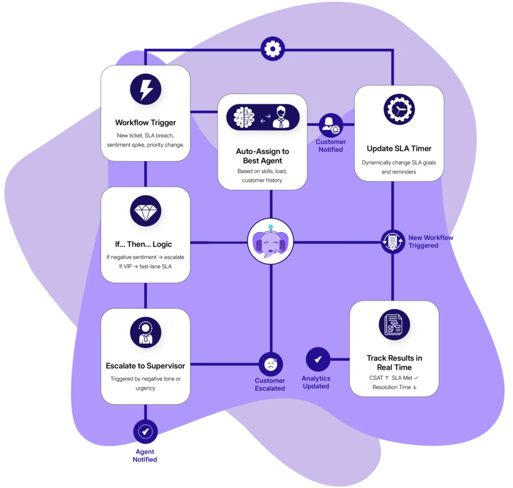 MEVA connects workflows across functions, ensuring agents collaborate, share context, and deliver unified experiences.