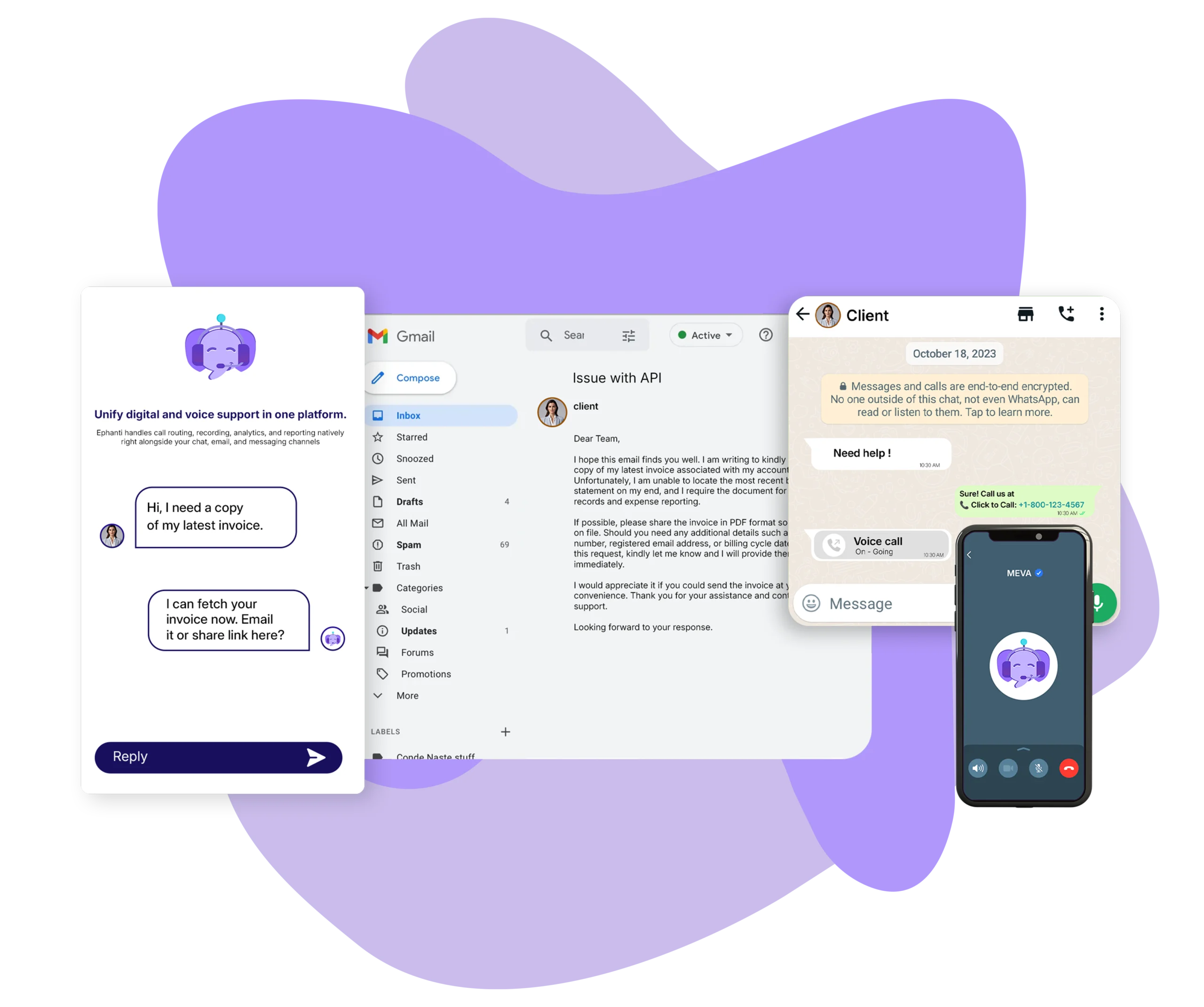 Ephanti Support brings together conversations, context, and collaboration into one intelligent platform. Built from the ground up with conversational AI at its core, Ephanti empowers AI agents with proactive insights, contextual next-best actions, and real-time support from internal experts. Result? Every customer interaction feels effortless and personalized.